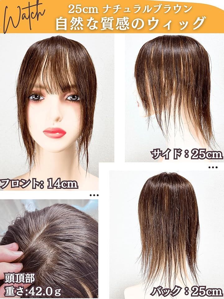 「分け目自由自在」(2)特徴:「ナチュラルウィッグ 25cm」はつむじや頭頂部周りの薄毛や生え際の白髪にお悩みの、ウィッグ、付け毛、カツラ初心者に最適の商品。