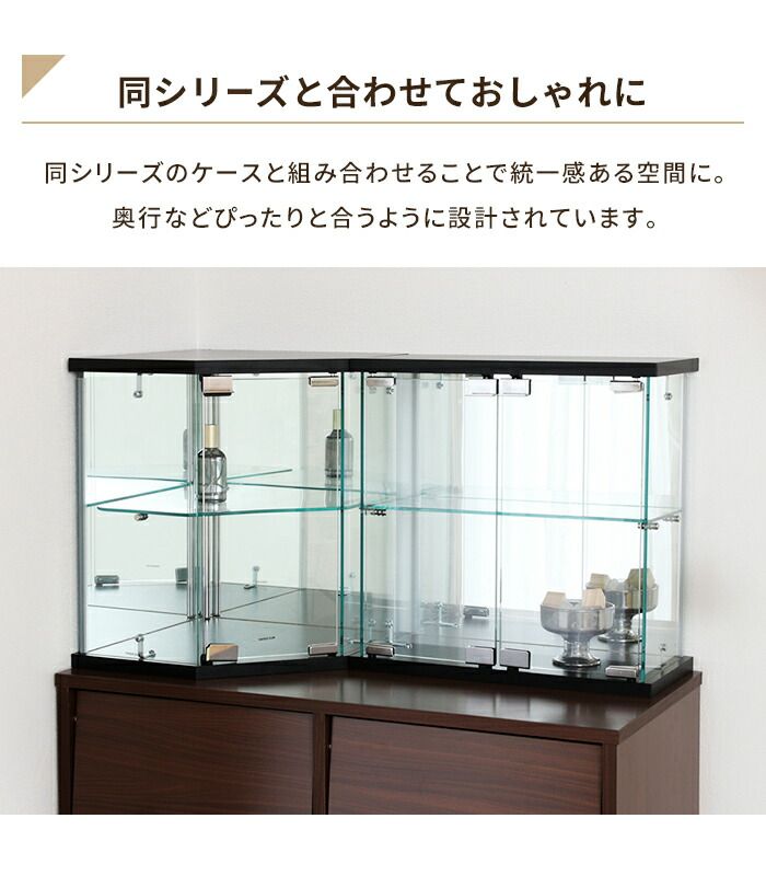 スペースを活用したコーナー型卓上ガラスコレクションケース