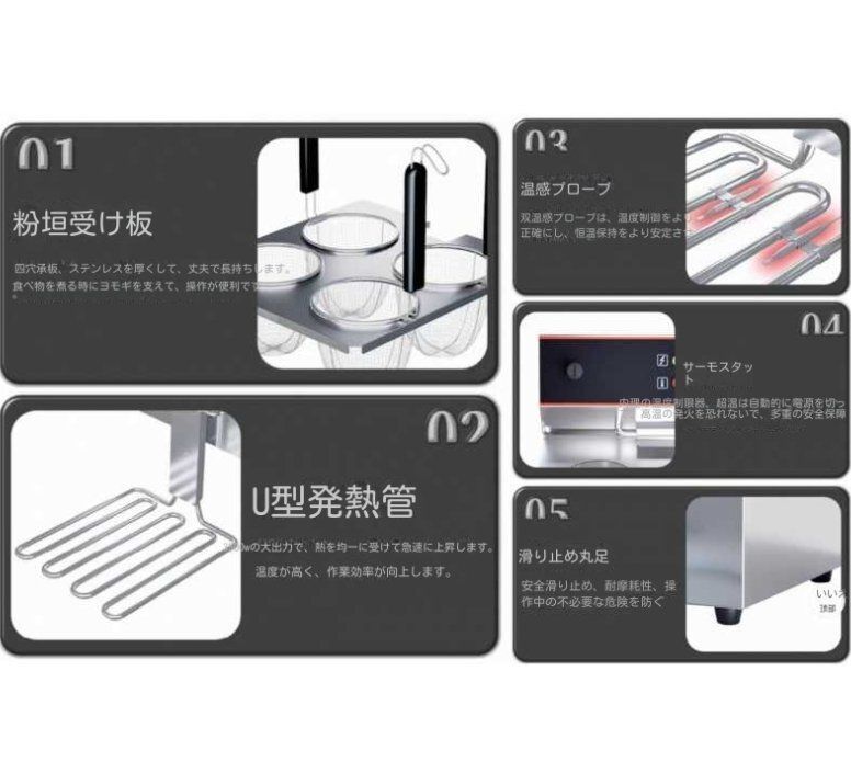 デスクトップ麺調理機ゆで麺器 麺茹で器 ゆでめんき 卓上電熱ゆで麺炉 電気パスタクッカー 4穴パスタ野菜クッカー 60-200℃温度調節
