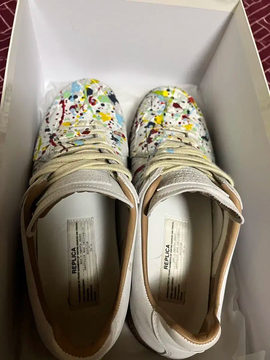 メゾンマルジェラ ドイツ軍 ペインティング スニーカーです。白 바탕にカラフルなペインティングが魅力的な商品です。ユニークなデザインでPOINTになります。別途コメント(※メルカリshop取引では対象外、Mercari窓口まで要連絡)なければすぐ安全決済をお願いします!