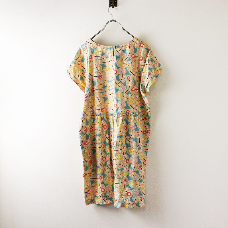 ミナペルホネン mina perhonen ランドリー LAUNDRY Hanna ワンピース 38 ブルー系 ドレス 花 フラワー リネン 半袖