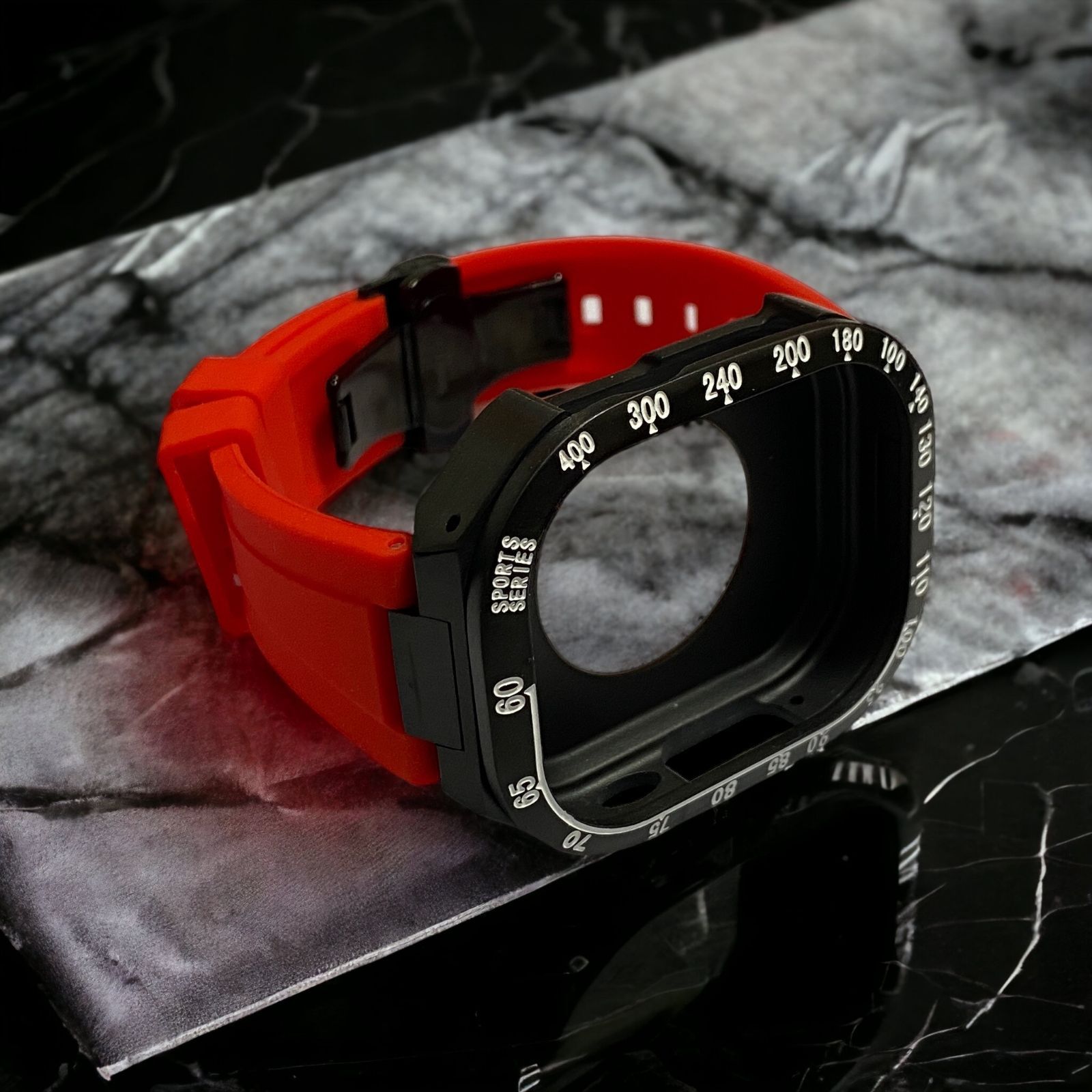 レッドブラック アップルウォッチ ウルトラ 49 mm メタル カバー ケース Apple Watch ultra 49ミリ ラバー バンド ベルト