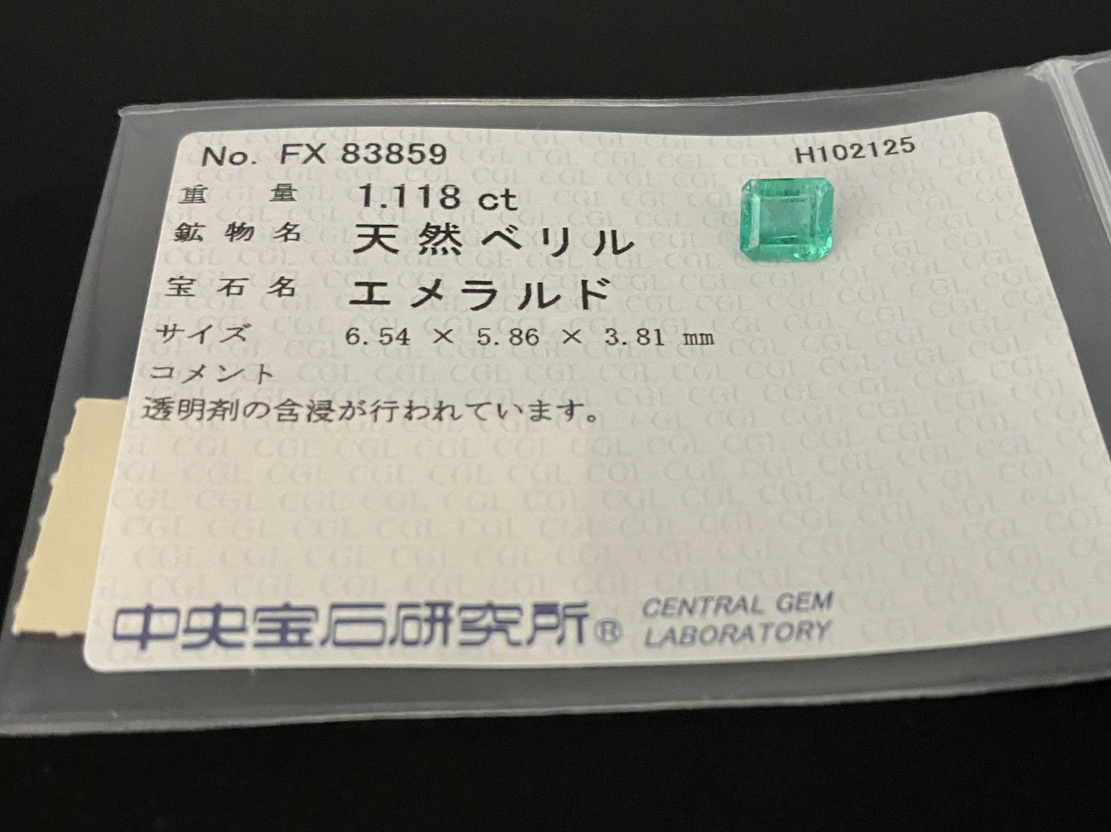 エメラルド 天然 1.118 ct 中央宝石ソーティング付き 6.54㎜×5.86㎜×3.81㎜ ルース 裸石 7110 YY