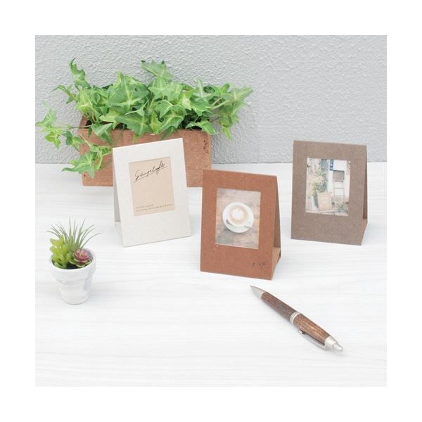 ●簡単に組み立てることができ、写真周りのスペースにタイトルや日付を書き込むことができるフォトスタンド。色はグレー、3枚パックです。