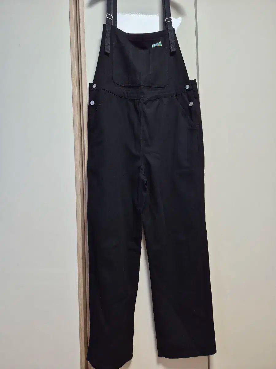 「グリーンバタ」コットン オーバーオール パンツ。ブラック