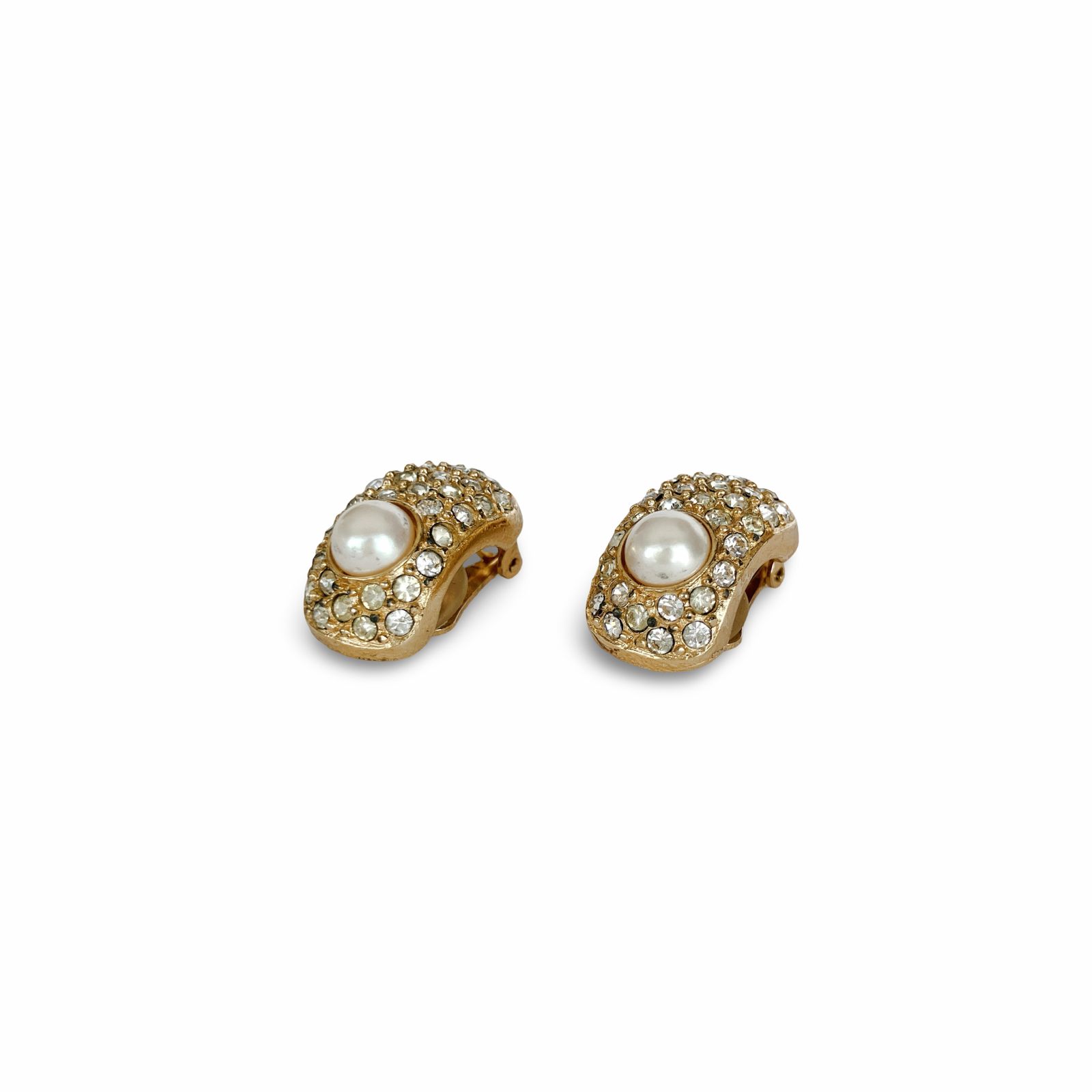 Christian Dior クリスチャンディオール パール ラインストーン ハーフフープ イヤリング ゴールド