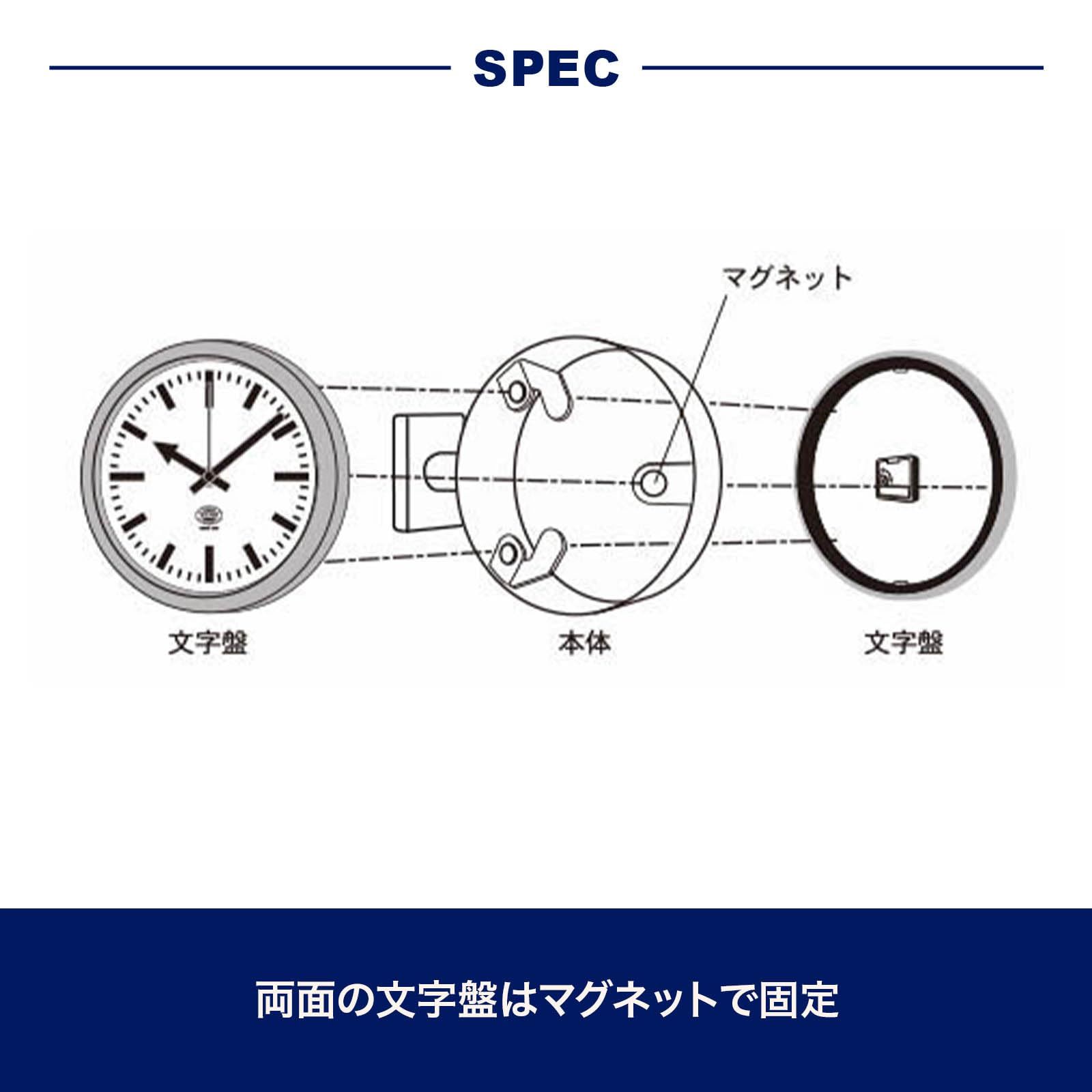 材質:本体:スチール(粉体塗装)、文字盤フレーム:スチール(無塗装・クリアラッカー仕上げ)、カバー:ポリスチレン