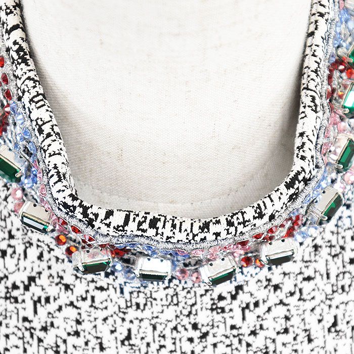 LOUIS VUITTON ルイ ヴィトン ワンピース LV ロゴ モノグラムフラワー ジュエリービジュー 宝石 モザイク柄 ストレッチ ショートスリーブ 半袖 ドレス レディース サイズ S モノトーン 総柄 イタリア製