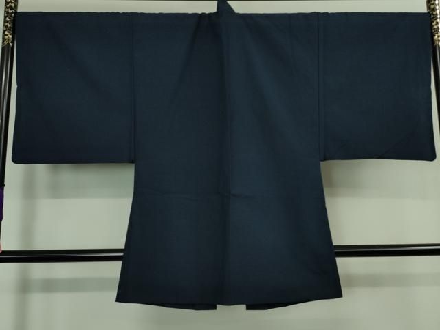 平和屋着物 上 男性 紬 アンサンブル 長羽織 色無地 留紺色 kh 5
