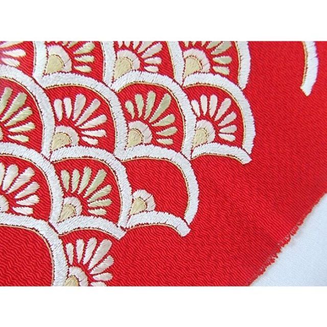 商品名:【刺繍 半えり】正絹 刺繍半衿 渡敬/菊 青海波☆赤【新品】