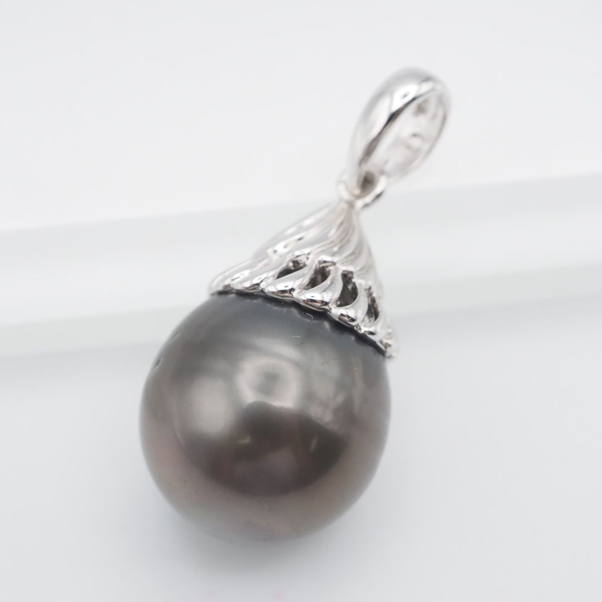 F 461 黒蝶真珠 パール SV刻印 ペンダント トップ シルバー デザイン チャーム ヘッド 誕生石