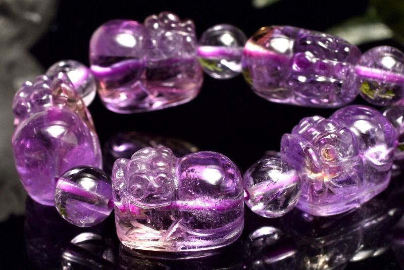 1点物 繊細彫刻 アメトリン 13.5-14 x 8.5-9 丸玉6.5 mm 貔貅彫刻 ブレスレット パワーストーン 天然石 _MA 8335