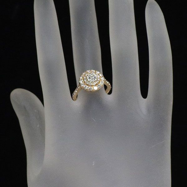 またメインダイヤモンドを波状のプラチナで囲むことでより大きく華やかに輝いて見えるこだわりのお作り。二重に取り巻いたメレダイヤモンドでさらにメインを美しく惹きたてています。