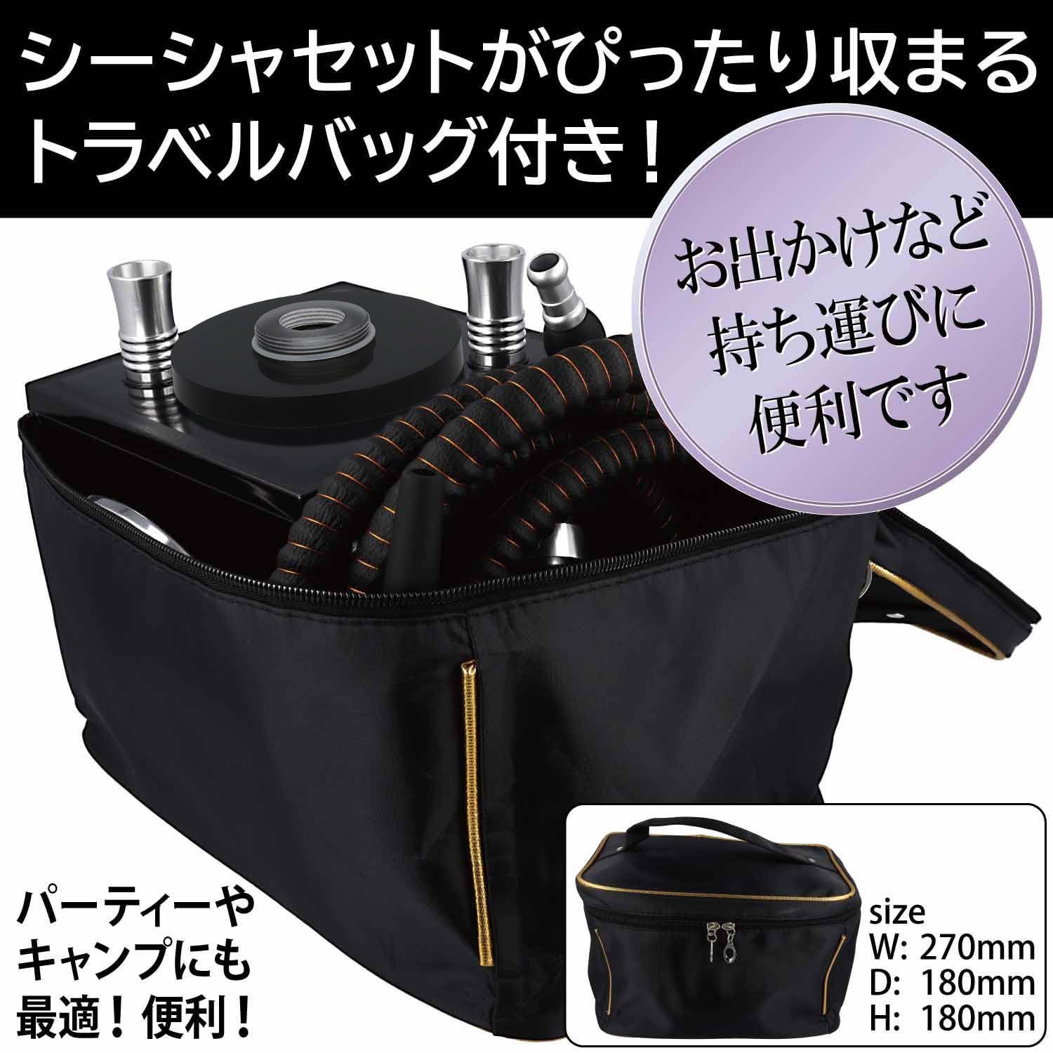 シーシャ 本体 持ち運び バッグ付 アウトドア 東レ 日本製 クリーナー付 セット LED 水タバコ (ロゴ無し)