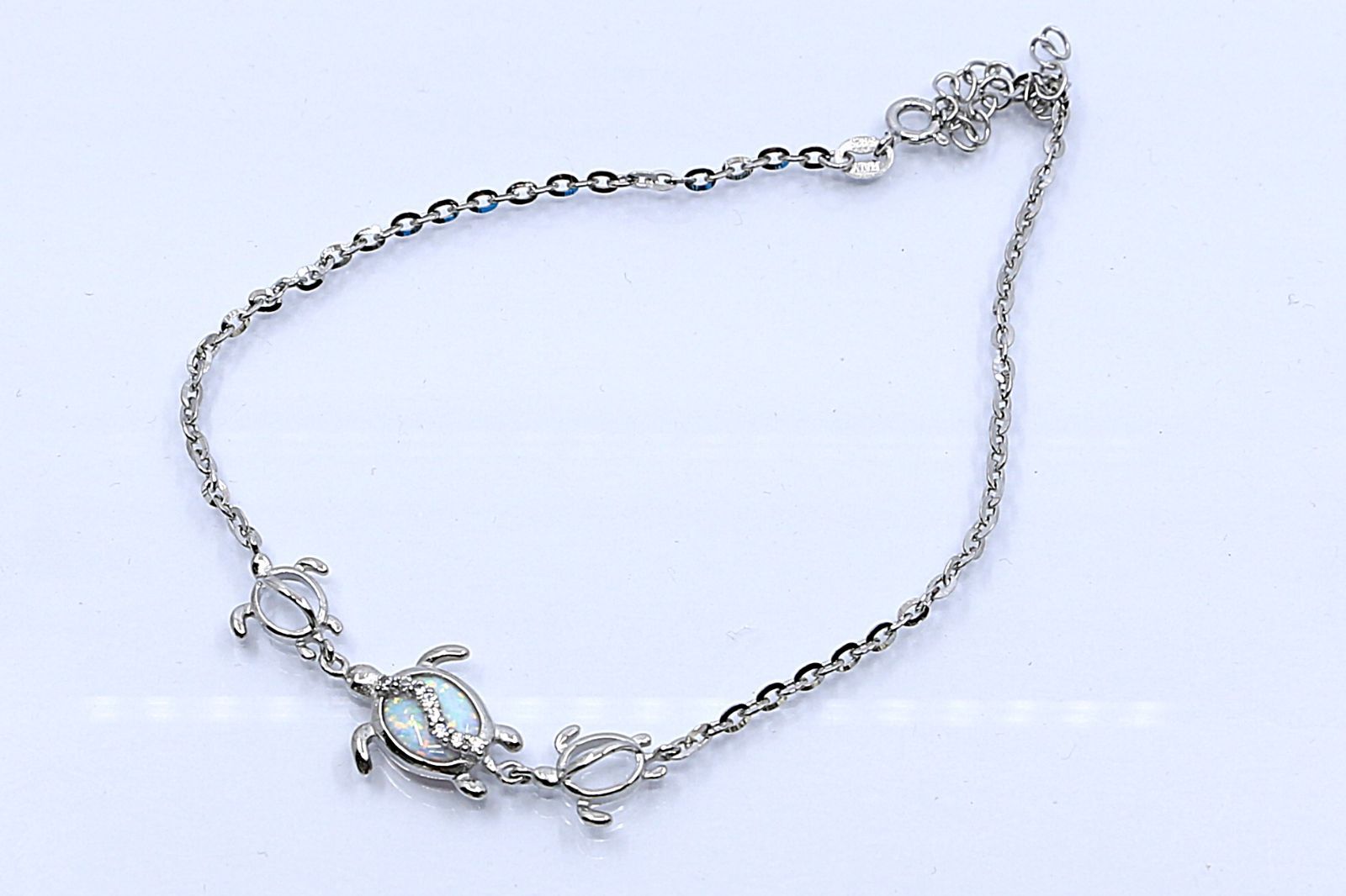 アンクレット ホヌ ホワイトオパール&キュービックジルコニア シルバー ハワイアンジュエリー ハワジュ