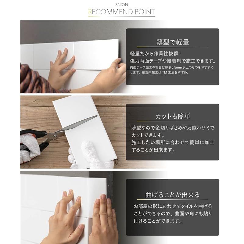 商品名:【新品】 SNiON シニオン メタルタイル ステンレスタイル 磁石がくっつくステンレスパネル 10cm×20cm グロスホワイト 10枚 CSZ