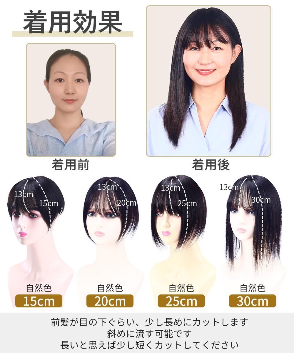 医療用ウィッグ ハゲ隠し ヘアピース 黒髪 女性 薄毛隠し 白髪 横7 cm縦10 cm トップカバー つむじ付き ウィッグ パッツンバング 増毛 軽量 自然 25 人工皮膚 リアル 人毛100% 自然色 部分ウィッグ HIYE