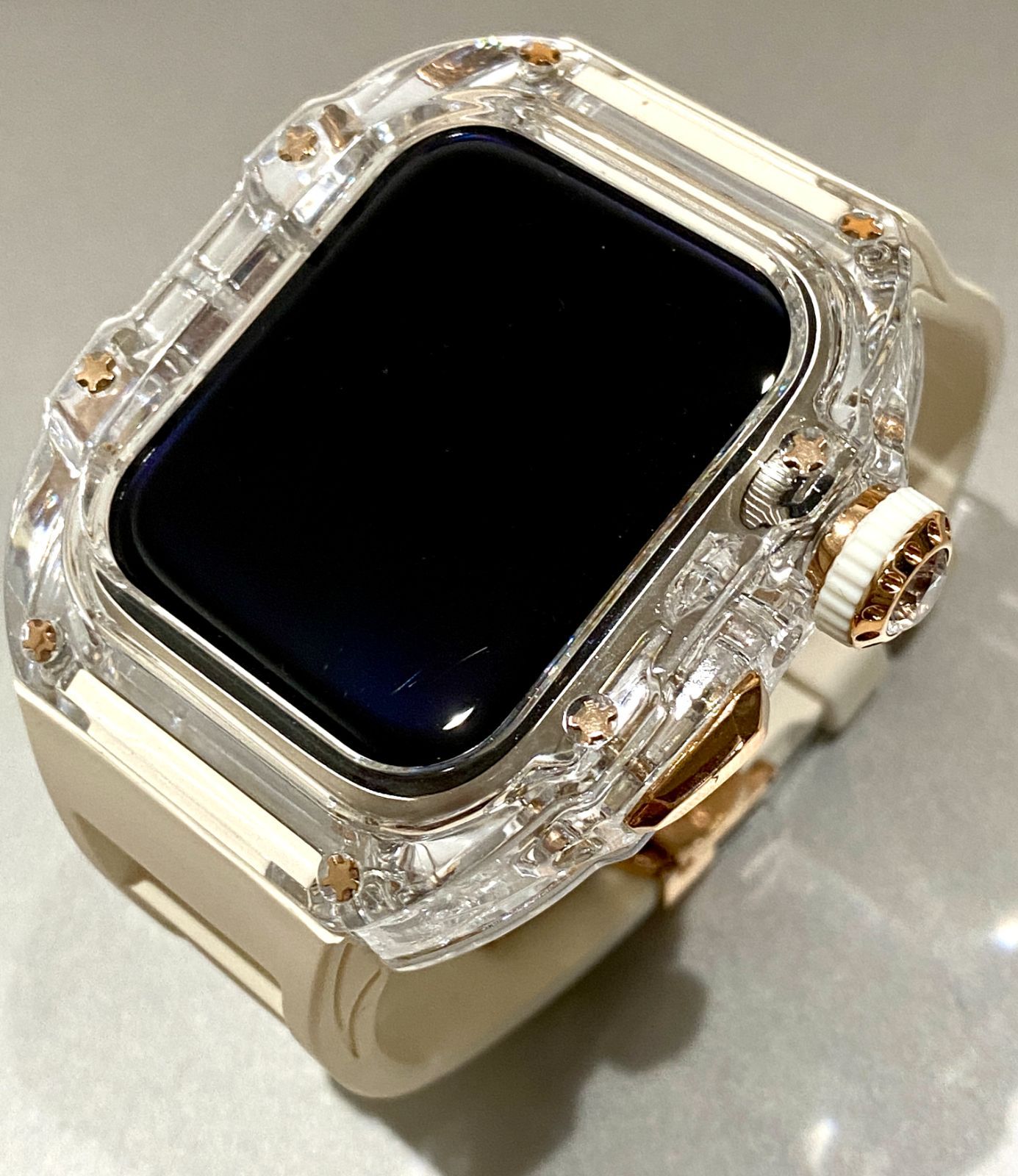 インビジブル×ホワイト アップルウォッチバンド ラバーベルト カバー Apple Watch ケース 45 mm. 44 mm スポーツ