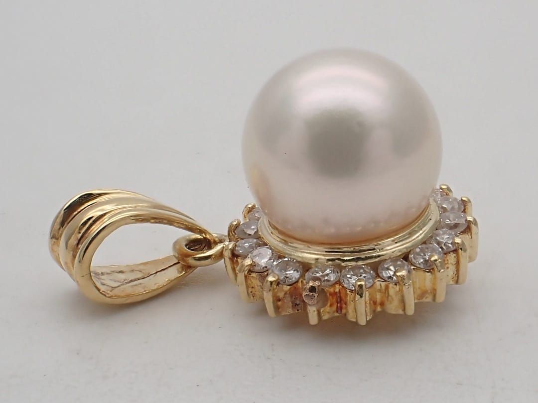 K 18 イエローゴールド ダイヤ取巻 パール ペンダントトップ あこや真珠8.1 mm珠 ダイヤ0.18 ct 2.26 g B C-9543 質屋