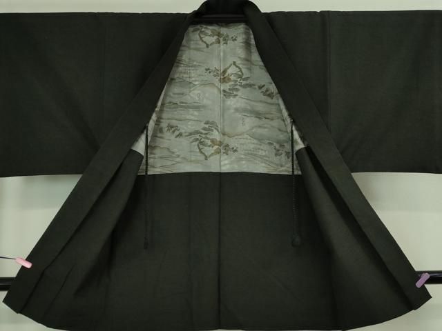 平和屋着物 上 男性 紬 アンサンブル 長羽織 色無地 蝋色 羽織紐付き kh 5
