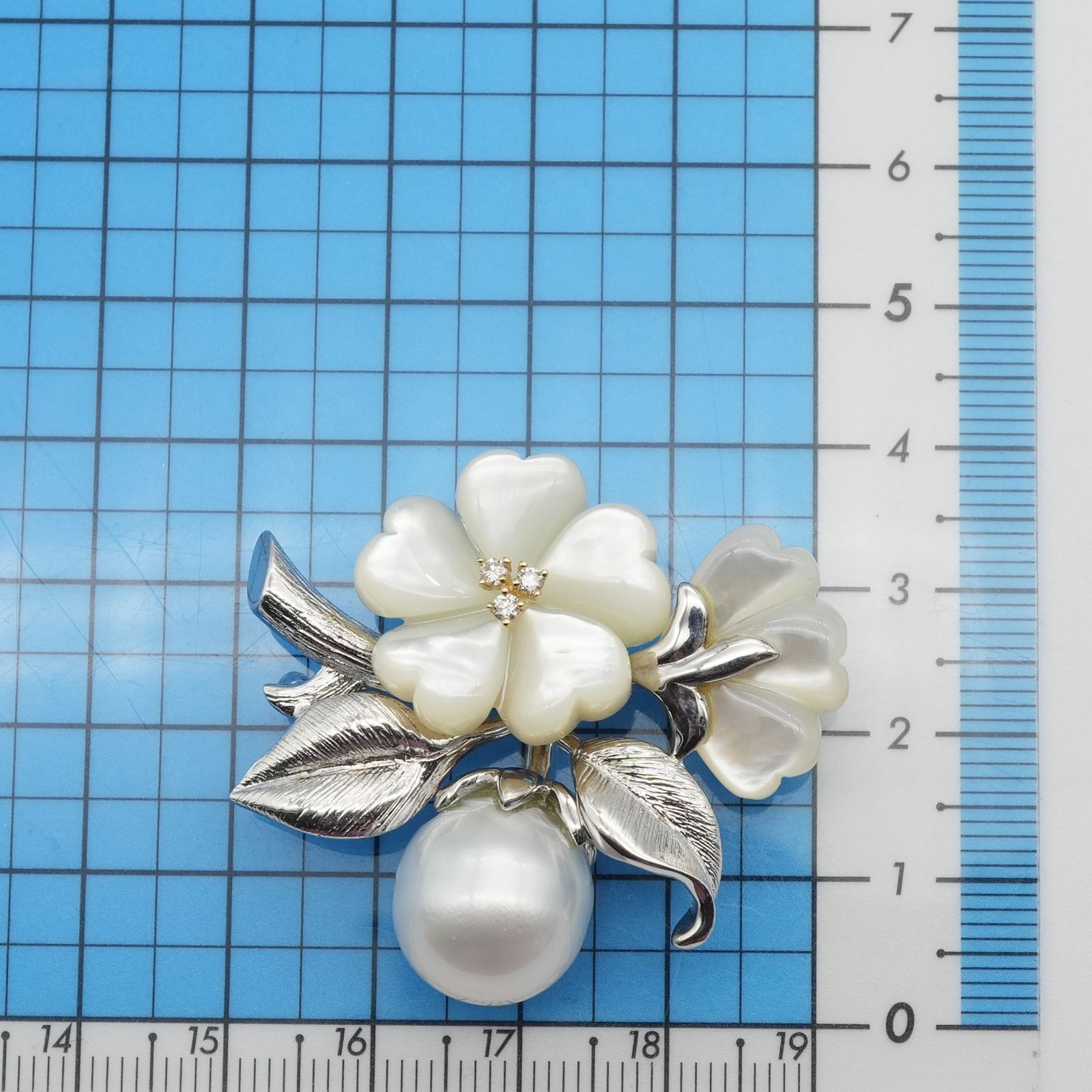 GSTV シェル×パール×ダイヤモンド フラワー ブローチ 25-1779 S